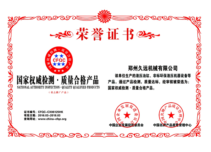 質(zhì)量合格榮譽(yù)證書