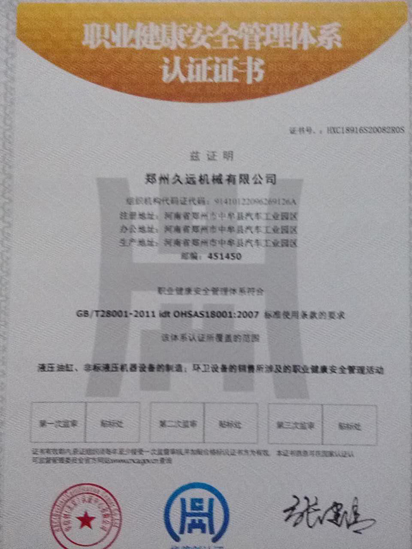 職業(yè)健康安全管理體系認(rèn)證證書(shū)