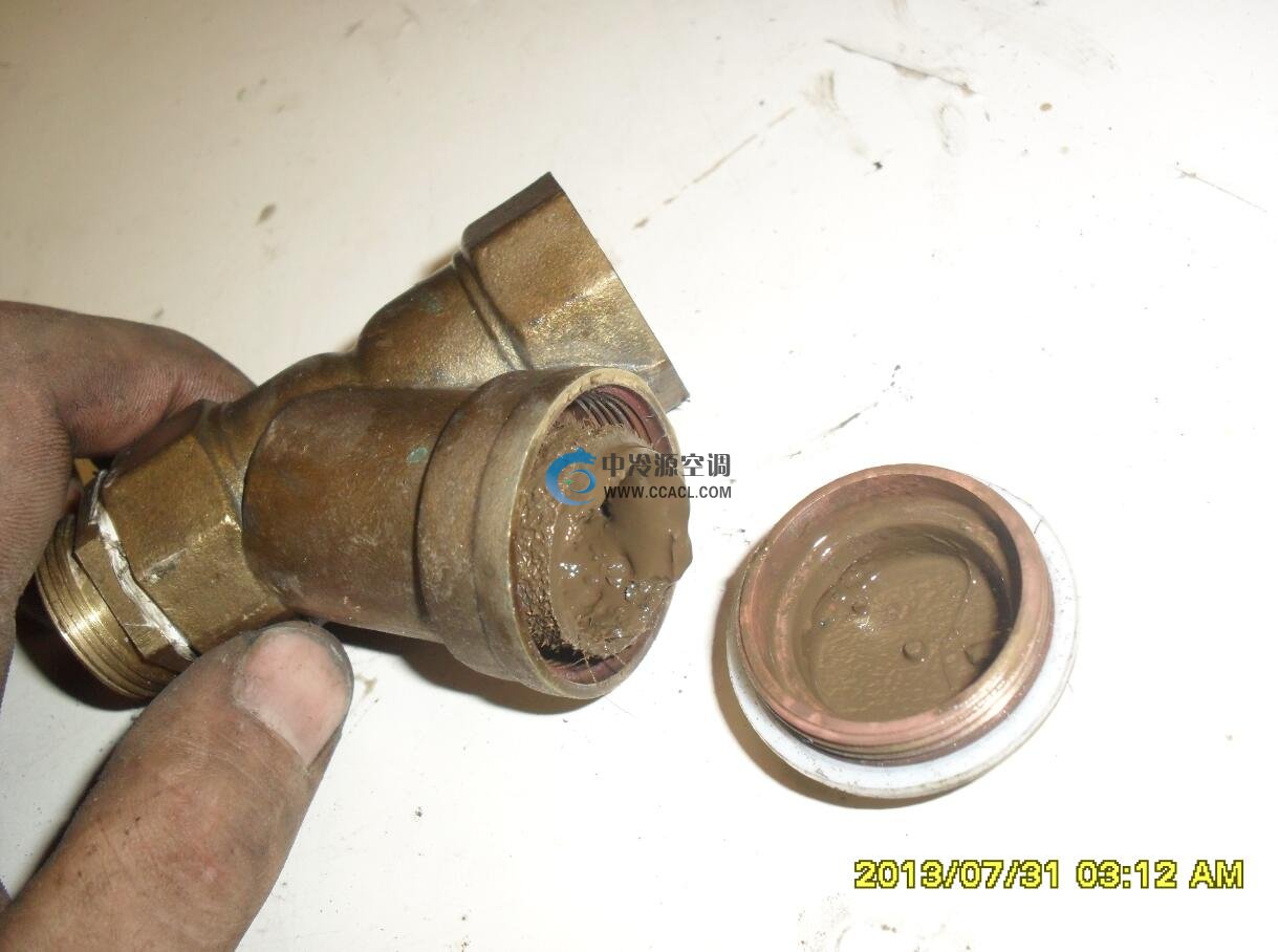 冷凍水管道上的Y型過濾器,已經全部堵塞,冷水無法循環