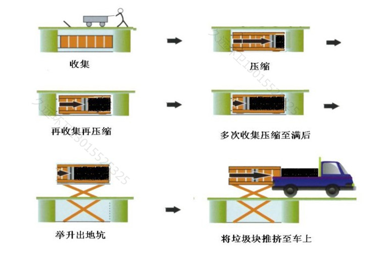 地埋式垃圾中轉(zhuǎn)站主要特點(diǎn):1.平穩(wěn)可靠:兩側(cè)舉升,剪叉跨度大,升降平穩(wěn),無傾斜。2.全封閉水平壓縮:垃圾壓實(shí)密度≧0.86t/m,大幅度節(jié)約轉(zhuǎn)運(yùn)成本。3.淺地坑:地坑深度僅為1.55m,保潔及維修極為方便。4.高效率:壓實(shí)每噸垃圾時間≤10min。 主要技術(shù)參考:型號JY-6000載重量(t)>6圧縮力(t)88垃圾塊尺寸3m1.9m1.2...